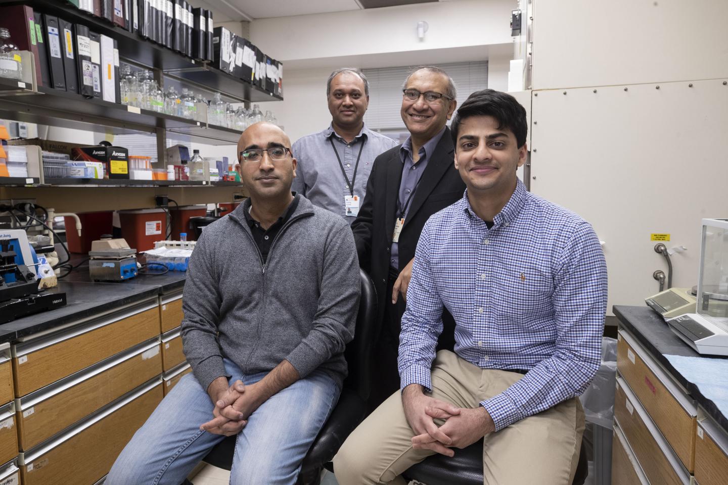 image: Aakrosh Ratan (from left), Pankaj Kumar, Anindya Dutta and Ajay Chatrath have identified a way to improve cancer outcomes by examining patients' genes.