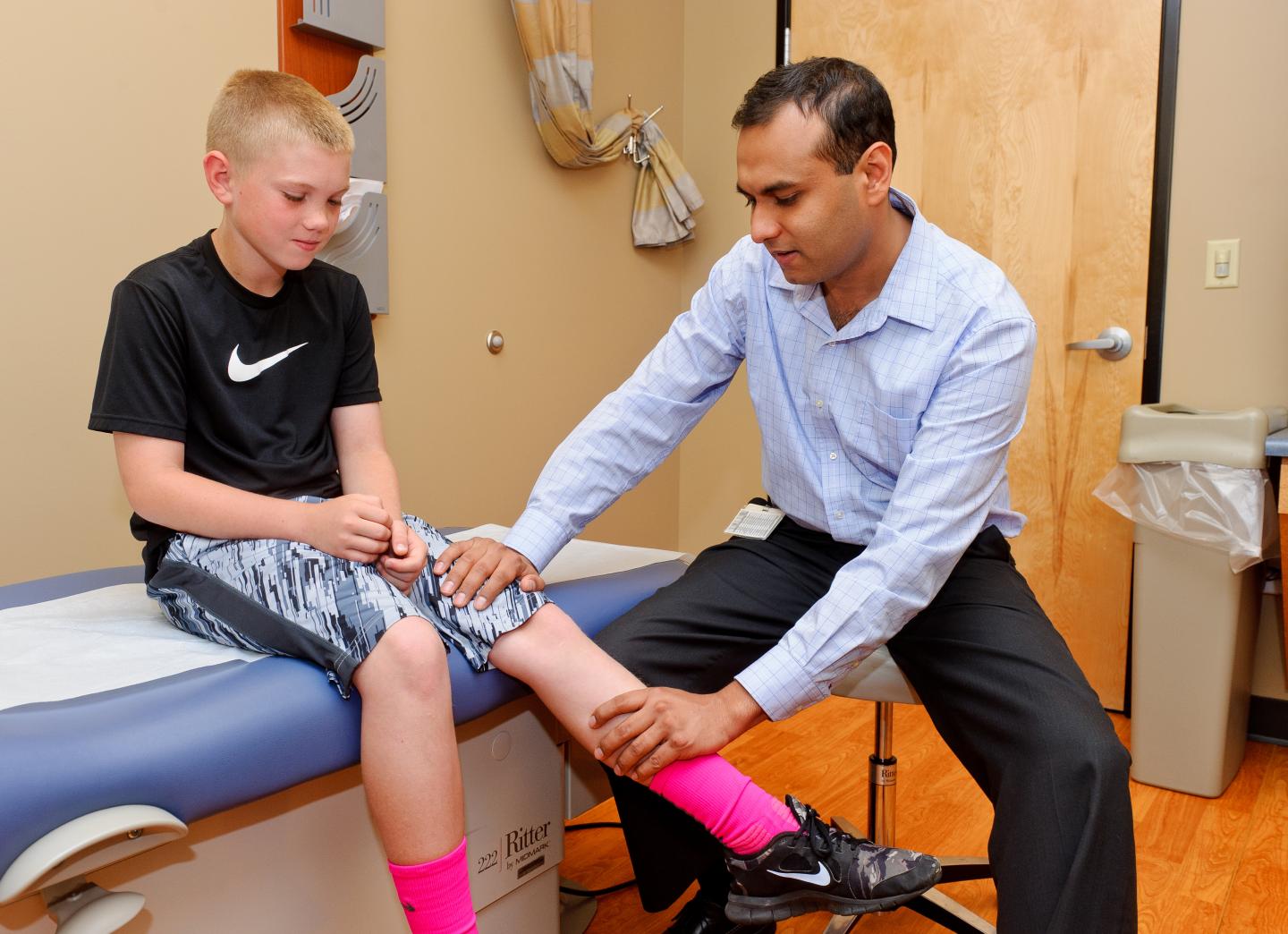 image: Sumit Gupta, MD, associate professor of orthopaedic surgery at the University of Missouri School of Medicine examines a pediatric patient during a clinic appointment.