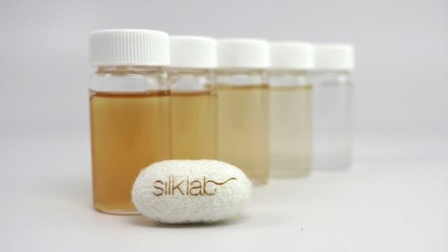video: The process of making the silk leather begins with dissolving the fibers and reformulating the protein for extrusion and printing into swatches with customized patterns