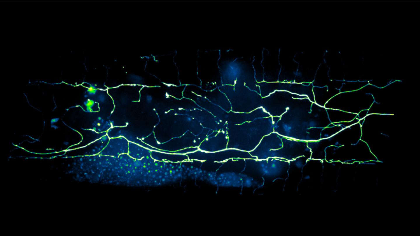 For this study, researchers focused on C. elegans, or roundworm, which is a model organism widely used to study aging and the development of the nervous system. Specifically, the researchers focused on PVD neurons, which are nerve cells that can detect both touch and temperature. The researchers chose the PVD neuron because it is found throughout the nervous system of C. elegans and it is known to degenerate due to aging.