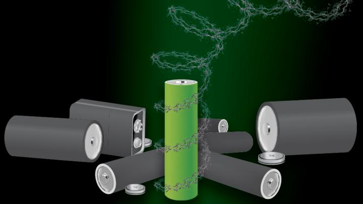 image: Graphic representation of metal-free, recyclable polypeptide battery.