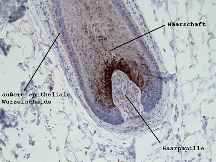 image: The brown color indicates where LSS is present, which includes most of the hair follicle.