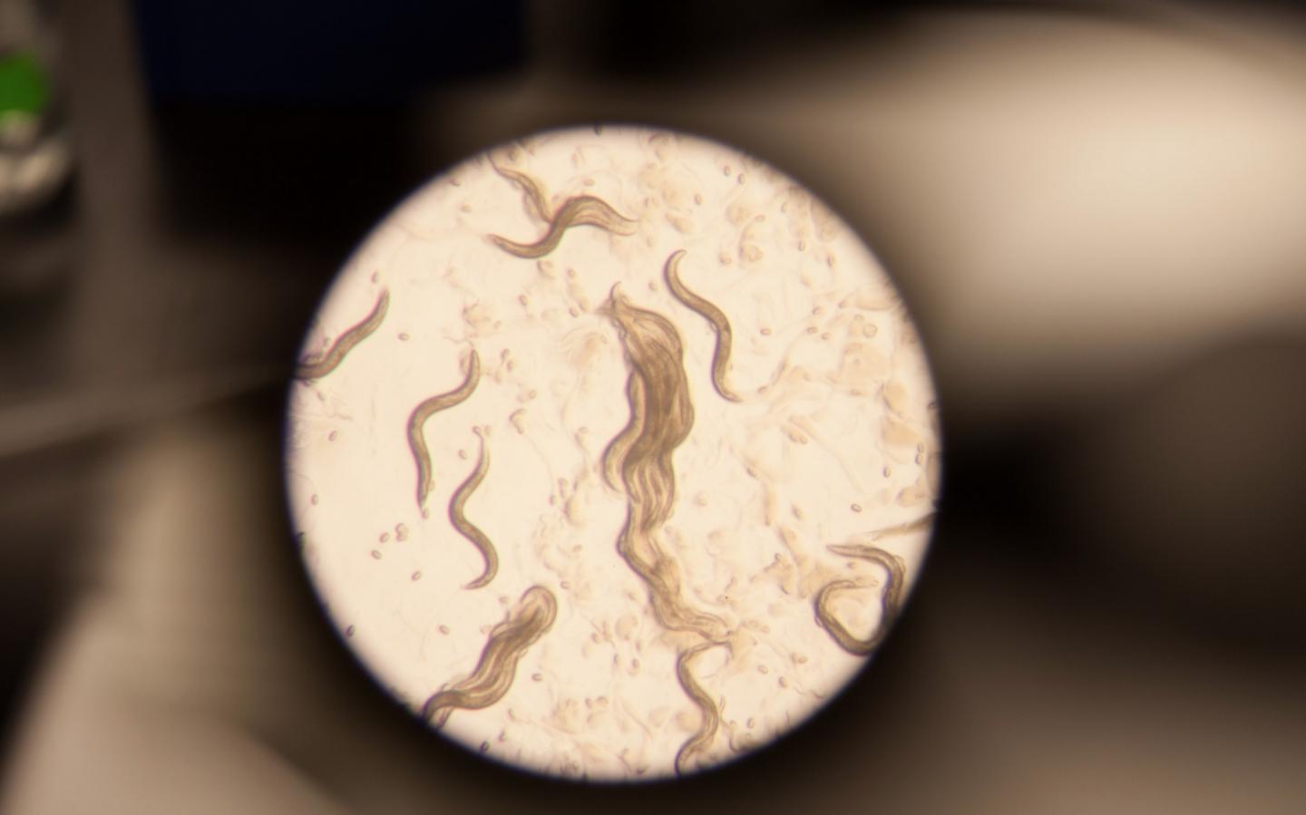 image: Caenorhabditis elegans (C. elegans), seen here under a microscope, offer a surprisingly good model for studying the function of sleep in humans and other mammals.