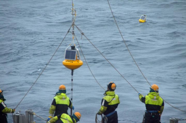 image: Two wave buoys were deployed over the ice-free Arctic Ocean on 8 September 2016 during the Arctic research cruise by RV Mirai.