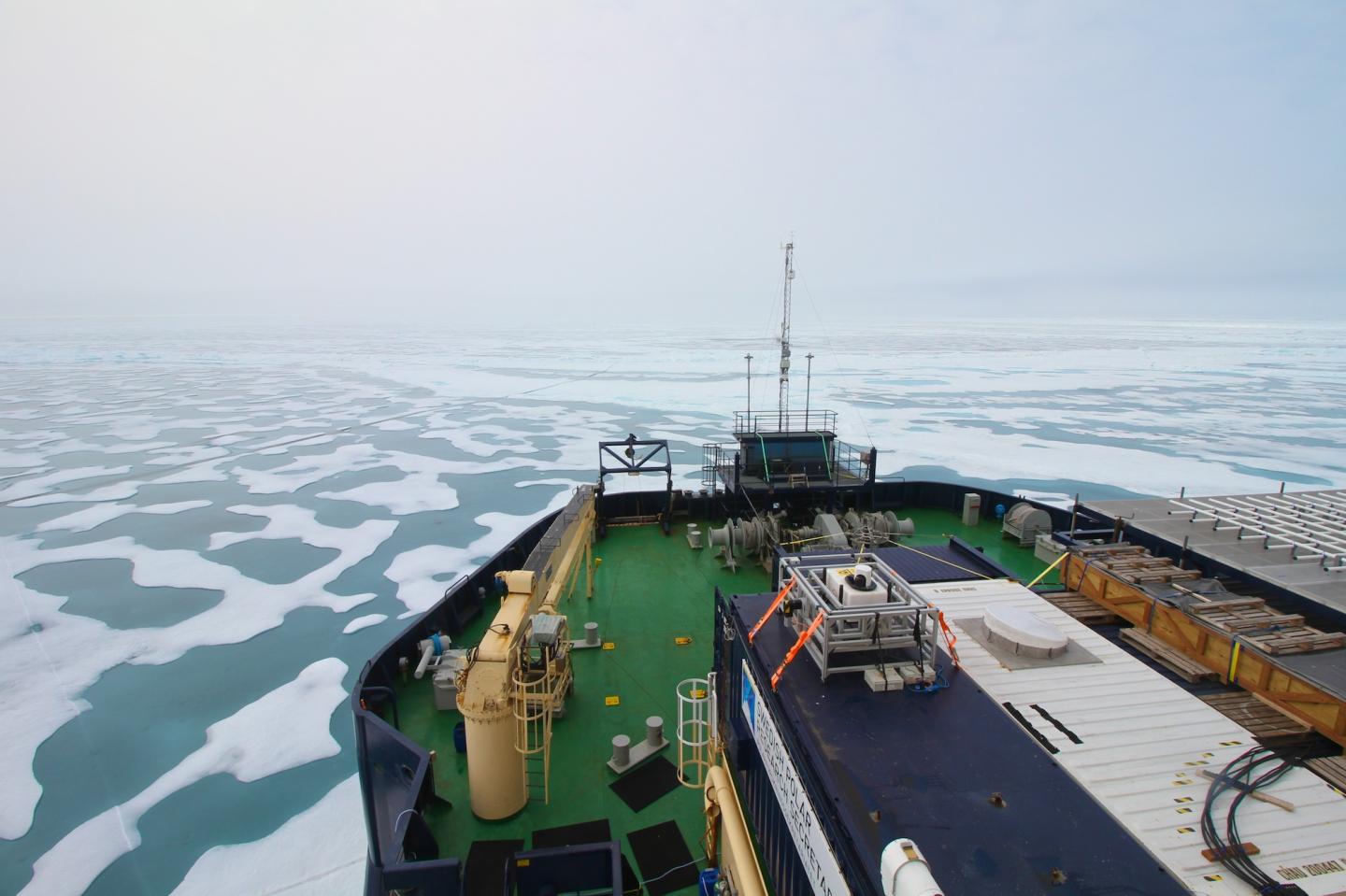In their study, the researchers used direct measurements of the methane sea-to-air flux to determine how much methane is leaking from the eastern Arctic Ocean to the atmosphere. They used data from the 2014 SWERUS-C3 project, during which the Swedish icebreaker Oden crossed the eastern Arctic Ocean from Tromsø, Norway.
