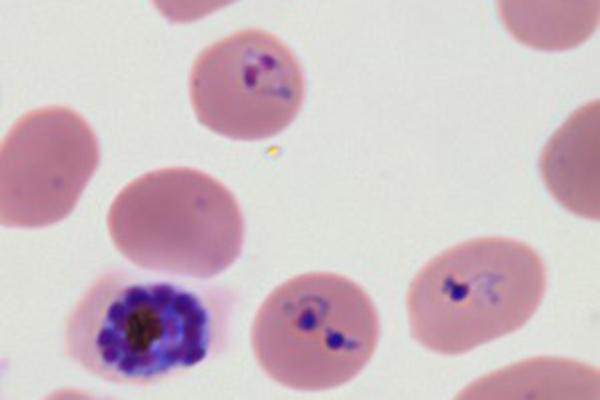 image: Giemza staining of Plasmodium falciparum the parasite that causes the most severe form of malaria.