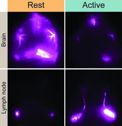 The researchers also found that during wakefulness, the glymphatic system diverts cerebrospinal fluid to lymph nodes in the neck. Because the lymph nodes are key waystations in the regulation of the immune system, the research suggests that cerebrospinal fluid may represent a fluid clock that helps wake up the body's infection fighting capabilities during the day.