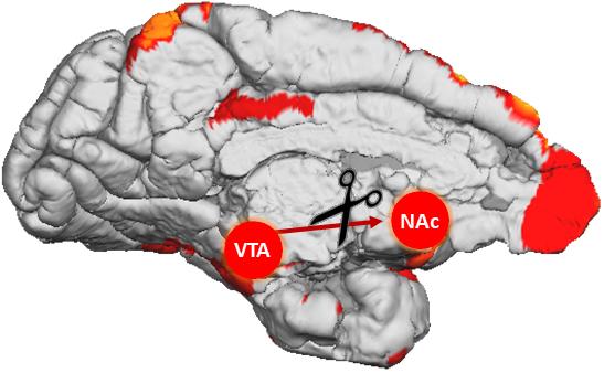 The researchers temporarily switched off the nerve pathway between the area tegmentalis ventralis (VTA) and the nucleus accumbens (NAc)