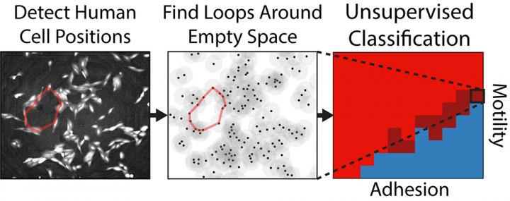 The new algorithm uses a mathematical framework called persistent homology to examine microscope images of cell assemblages. Specifically, it looks at the topological patterns -- loops or holes -- that the cells form collectively. By looking at which patterns persist across different spatial resolutions, the algorithm determines which patterns are intrinsic to the image.
