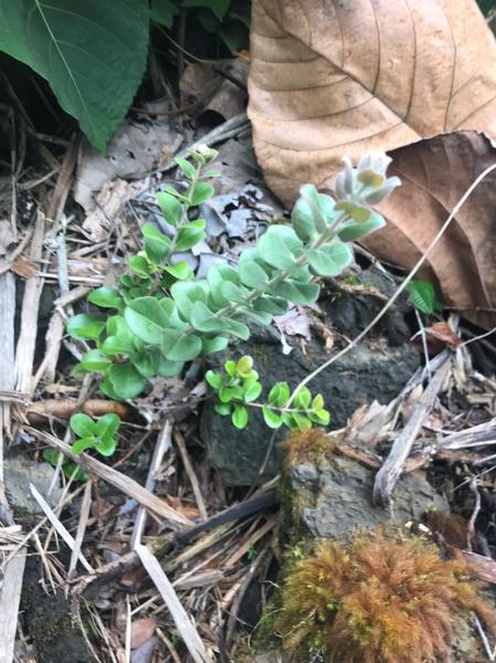 image: 'Ohi'a (Metrosideros polymorpha) seedling in an unweeded plot.