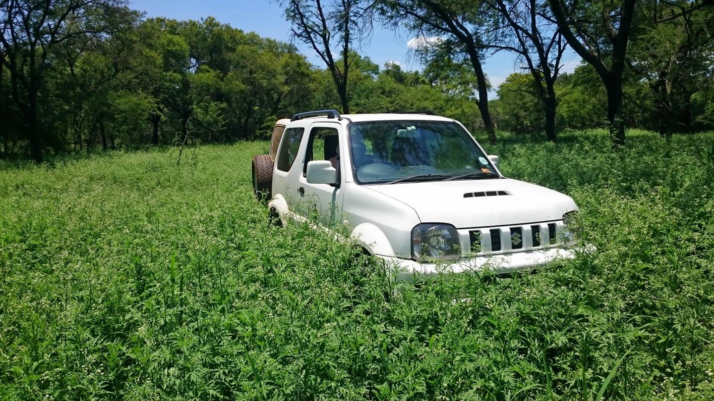 image: A Wits University vehicle is stuck in a field of Parthenium, outside the Kruger National Park in South Africa.