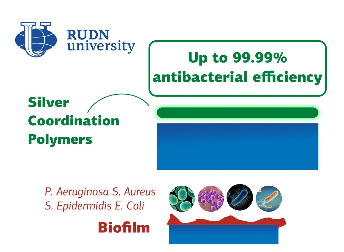 Due to the rapid mutation, harmful microorganisms constantly adapt to new antibiotics and antiseptics. It is especially difficult to destroy bacteria when they form a biofilm. They stick together and create a community ready to fight antimicrobial agents back. Coordination polymers (scaffolds made of metal ions and organic ligands) can solve this problem. They prevent pathogens from forming biofilms and replicating on the surfaces. RUDN University chemists have created two coordination polymers with silver ions with almost 100% antibacterial activity.