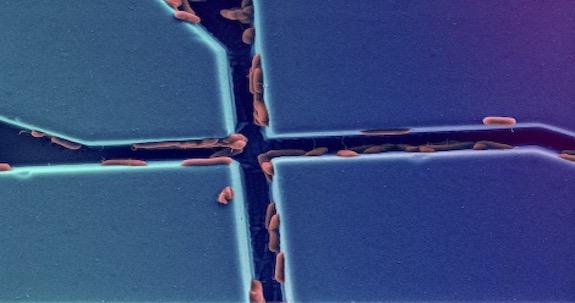 image: By observing 5 different species of bacteria moving through a variety of microfluidic channels, the researchers discovered that bacteria navigated through the spaces not based on their own sizes or proportions, as the researchers had imagined, but instead depending on the kinds of spaces they were navigating through.