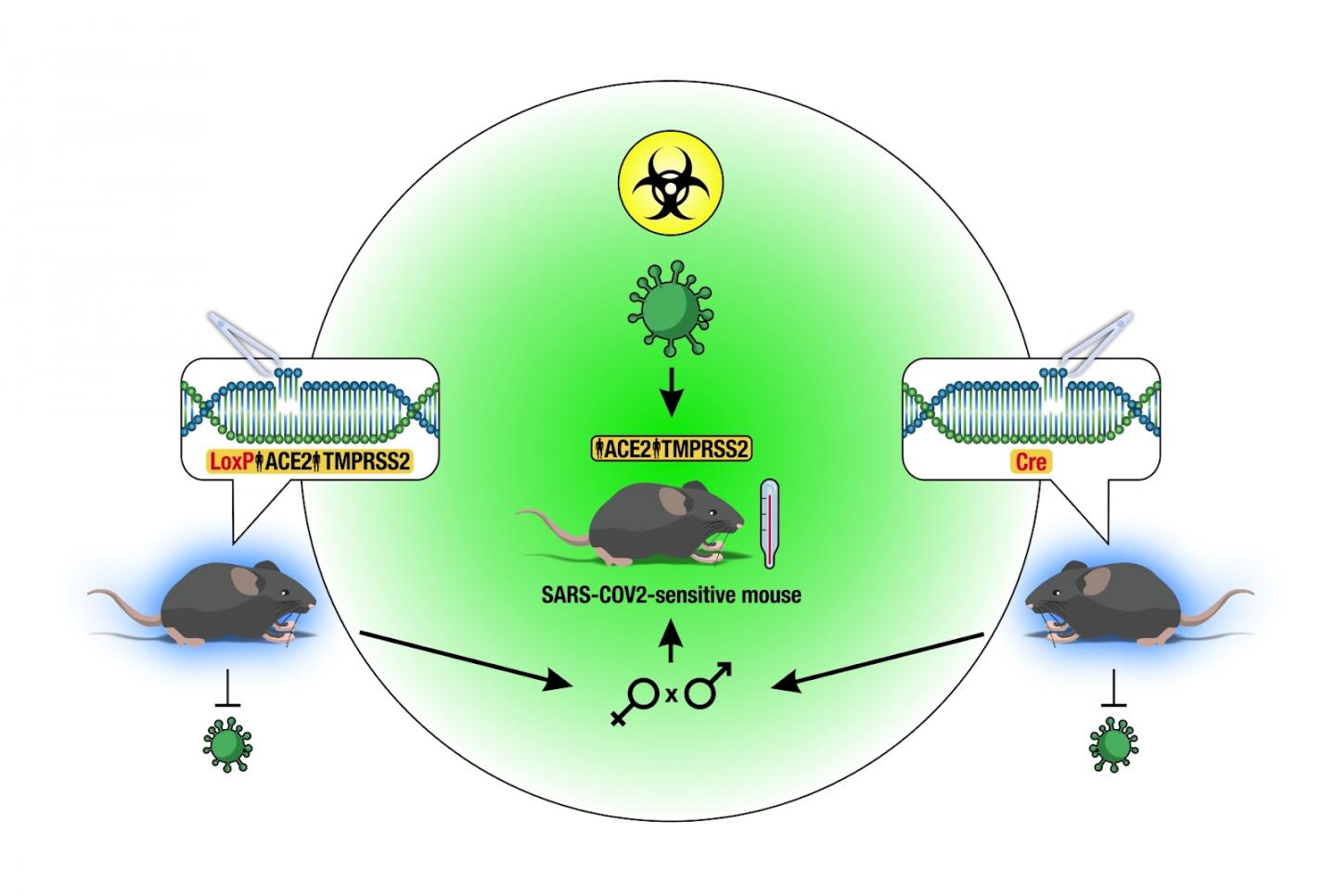 To obtain mice with human-like COVID-19 symptoms and pathology, the researchers will introduce human ACE2 and TMPRSS2 genes into the murine genome under the mice's own Tmprss2 promoter. Another key decision on the way of creating the new model is to ensure that SARS-CoV-2 sensitivity is inducible only after the introduction of LoxP sites in front of the human ACE2 and TMPRSS2 genes. As a result, human genes in a murine genome will turn on once a crossbreeding with mice expressing Cre-recombinase occurs.