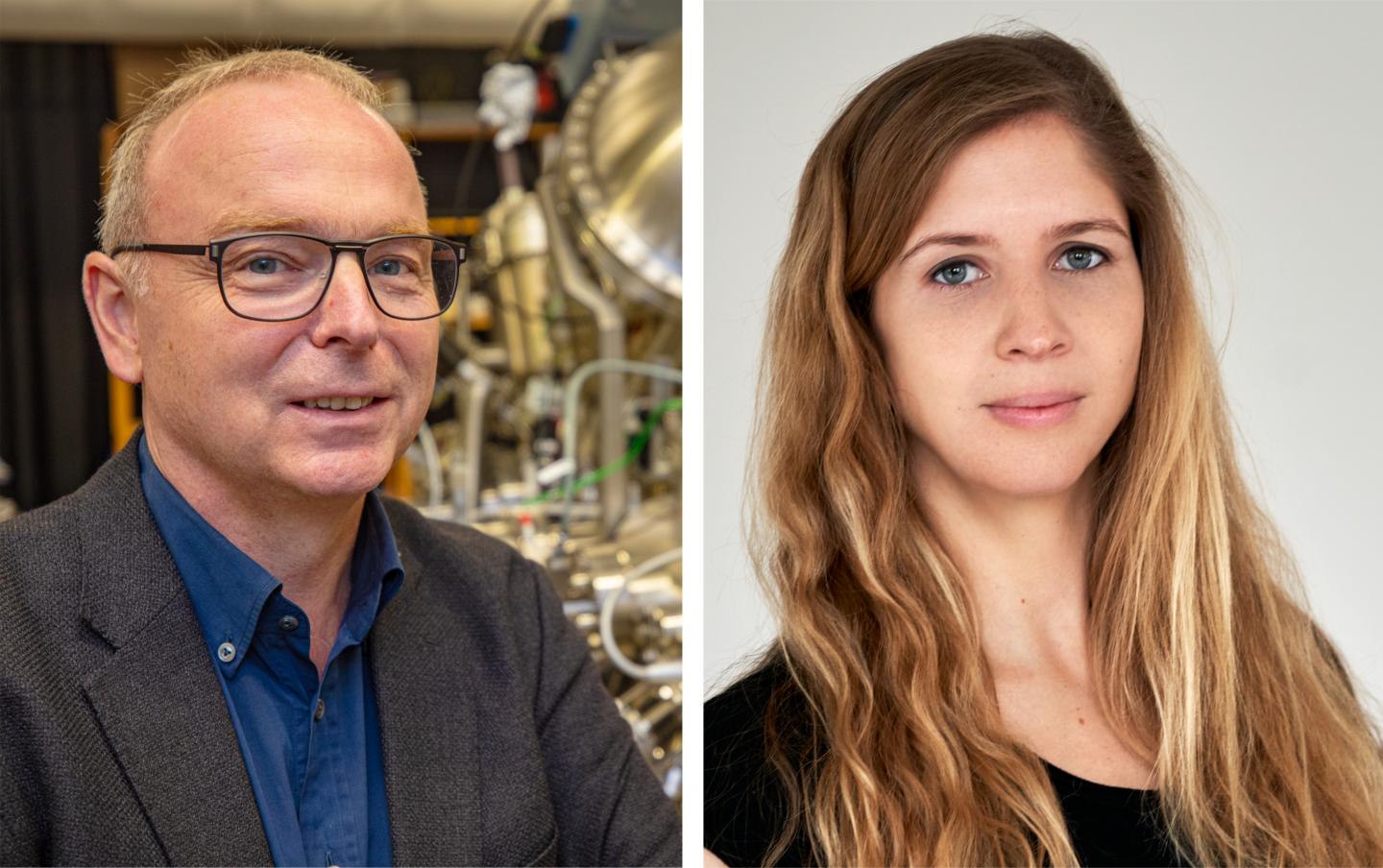 image: Professor Dr Armin Gölzhäuser and Dr Natalie Frese from the Faculty of Physics studied SARS-CoV-2 with the helium ion microscope.