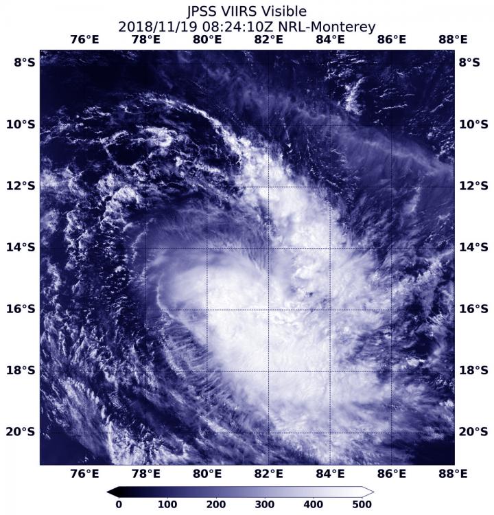 image: At 3:24 a.m. EDT (0824 UTC) on Nov. 19, the VIIRS instrument aboard NOAA's NOAA-20 satellite captured a visible image of Tropical Cyclone Bouchra in the Southern Indian Ocean.