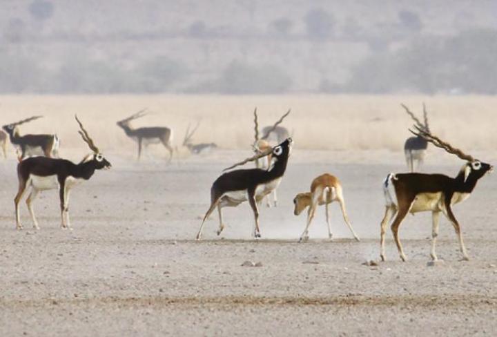 At Tal Chhapar, a wildlife sanctuary in the heart of the Thar desert, a strange drama is staged twice every year. In the blistering heat of summer from March to April and the post-monsoon months of September and October, up to a hundred blackbuck males stake out territories on the flat land to entice females to mate with them in a unique assemblage called a lek.