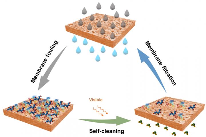 The synergy between membrane separation and redox reactions involving organic pollutants and ROS produced by the visible light-activated layer suggests a possibility for stable and sustainable membrane operation under in situ solar irradiation.