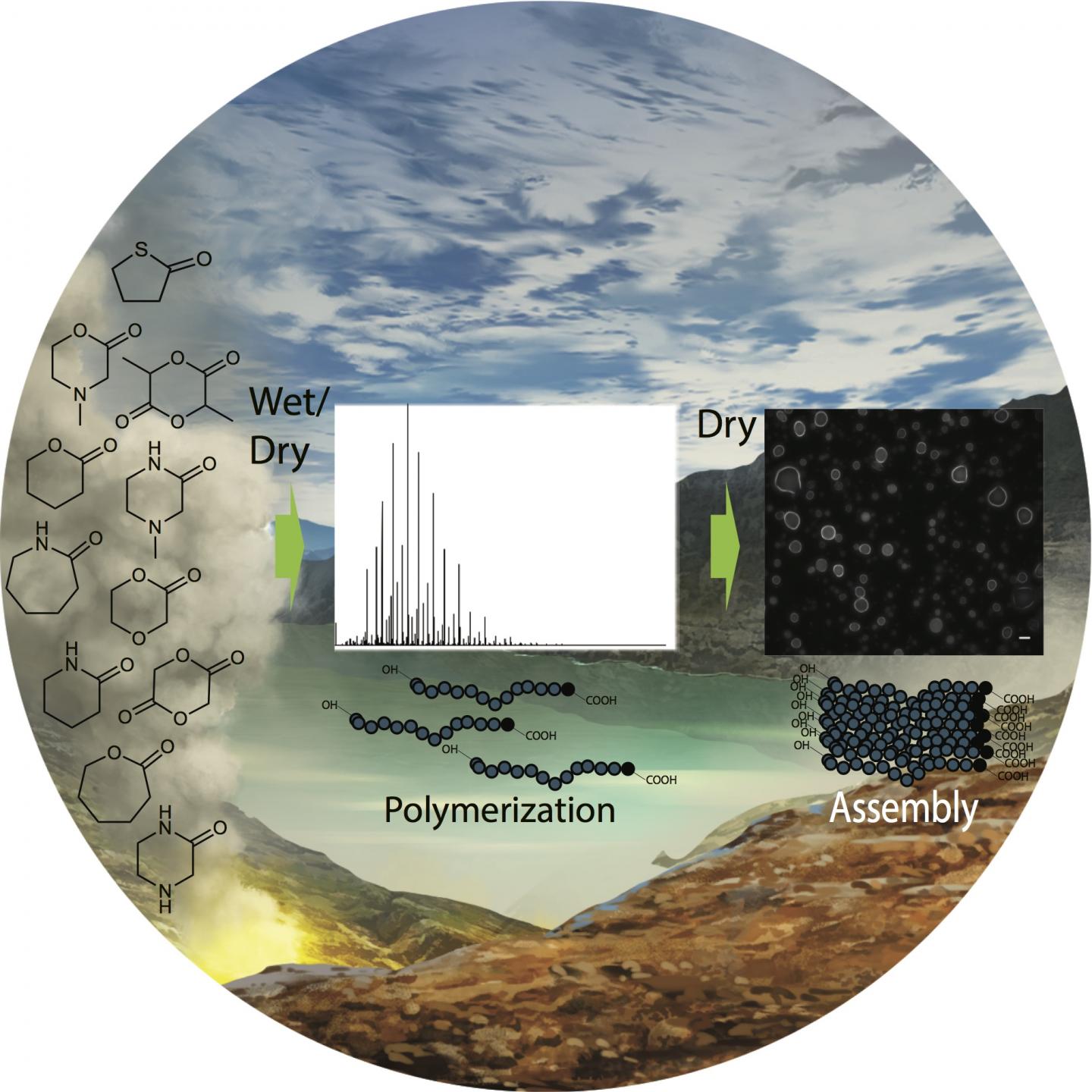 Chemists studying how life started often focus on how modern biopolymers like peptides and nucleic acids contributed, but modern biopolymers don't form easily without help from living organisms. A possible solution to this paradox is that life started using different components, and many non-biological chemicals were likely abundant in the environment. A new survey conducted by an international team of chemists from the Earth-Life Science Institute (ELSI) at Tokyo Institute of Technology and other institutes from Malaysia, the Czech Republic, the US and India, has found that a diverse set of such compounds easily form polymers under primitive environmental conditions, and some even spontaneously form cell-like structures.