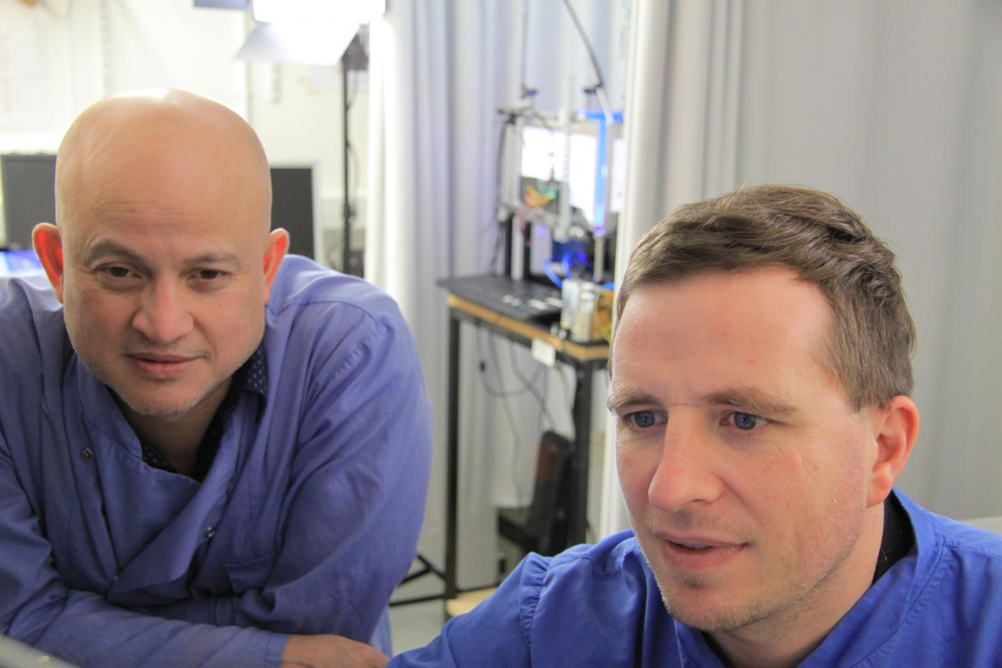 image: Dr. Steven Poulter and Dr. Colin Lever in the lab discovering the cells.