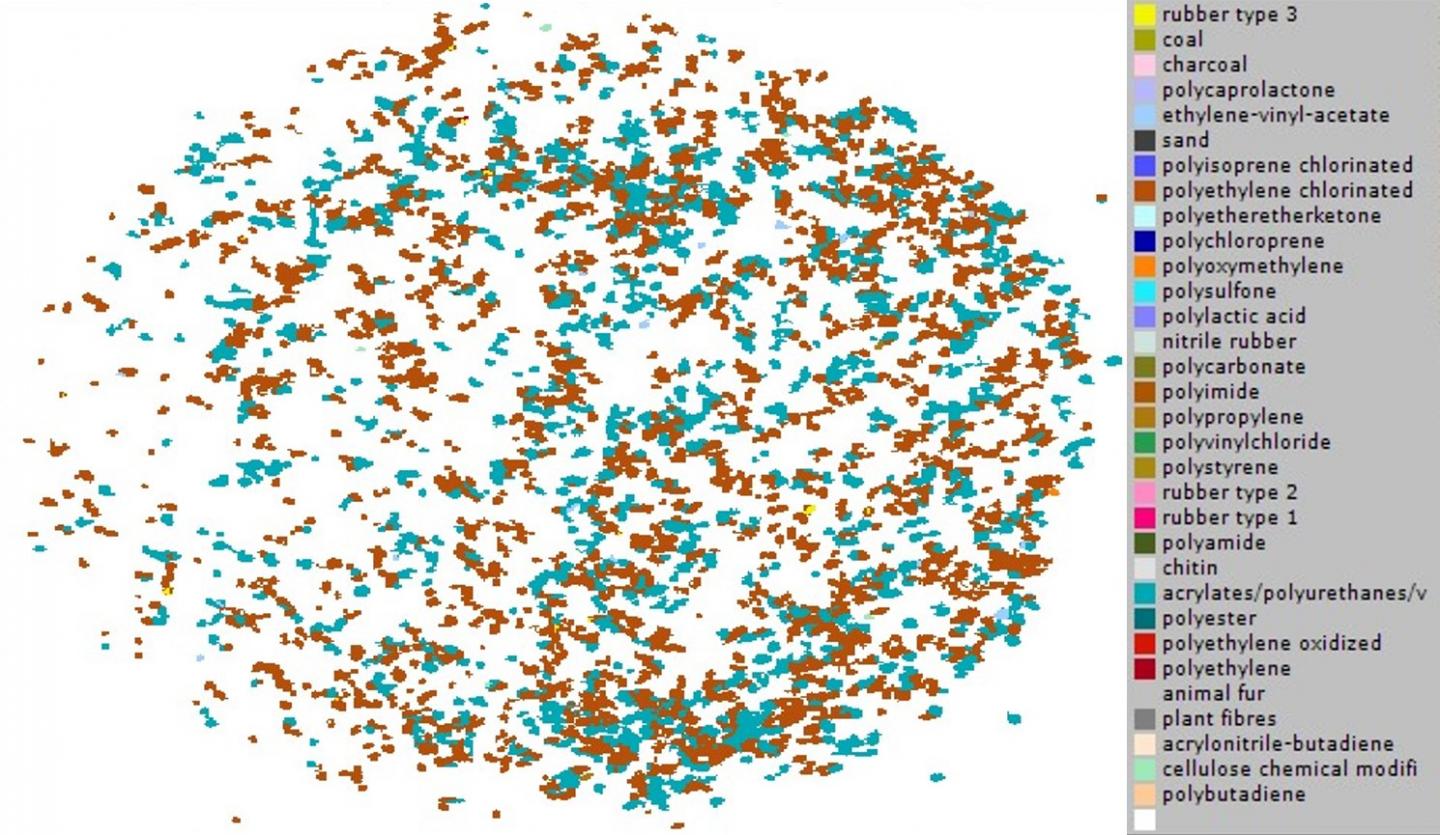 image: This image is generated by siMPle, an FTIR particle-analysis software, after comparison of the acquired particles spectra with a reference database