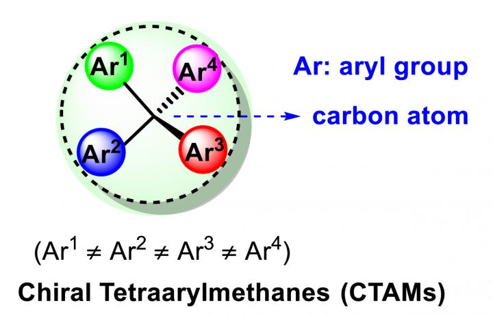 "The difficulty associated with the synthesis of chiral tetraarylmethanes is that forming extremely crowded bonds around a small carbon atom requires overcoming a substantial energy barrier," said Jianwei Sun, the group's leading researcher and Professor at the Department of Chemistry, HKUST. "The other difficulty is that the bond has to be made in a defined 3D orientation. These two requirements substantially reduce the chance of success, but we were able to overcome by using a tagging strategy."