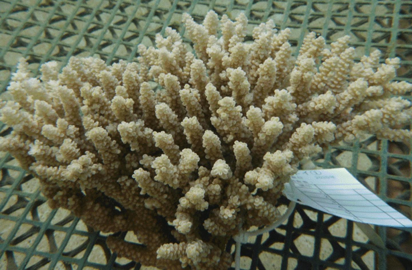 image: A colony of Acropora tenuis grown in a natural sea environment and transferred to an aquarium to induce spawning.
