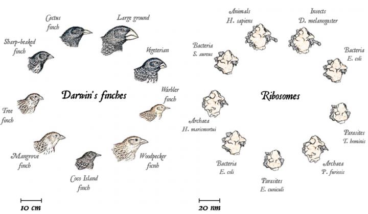 image: The new study illustrates the remarkable similarity between how evolution happens in the macroscopic world and how evolution happens in the world that Darwin never saw -- the microscopic world of invisible molecules that inhabit living cells.