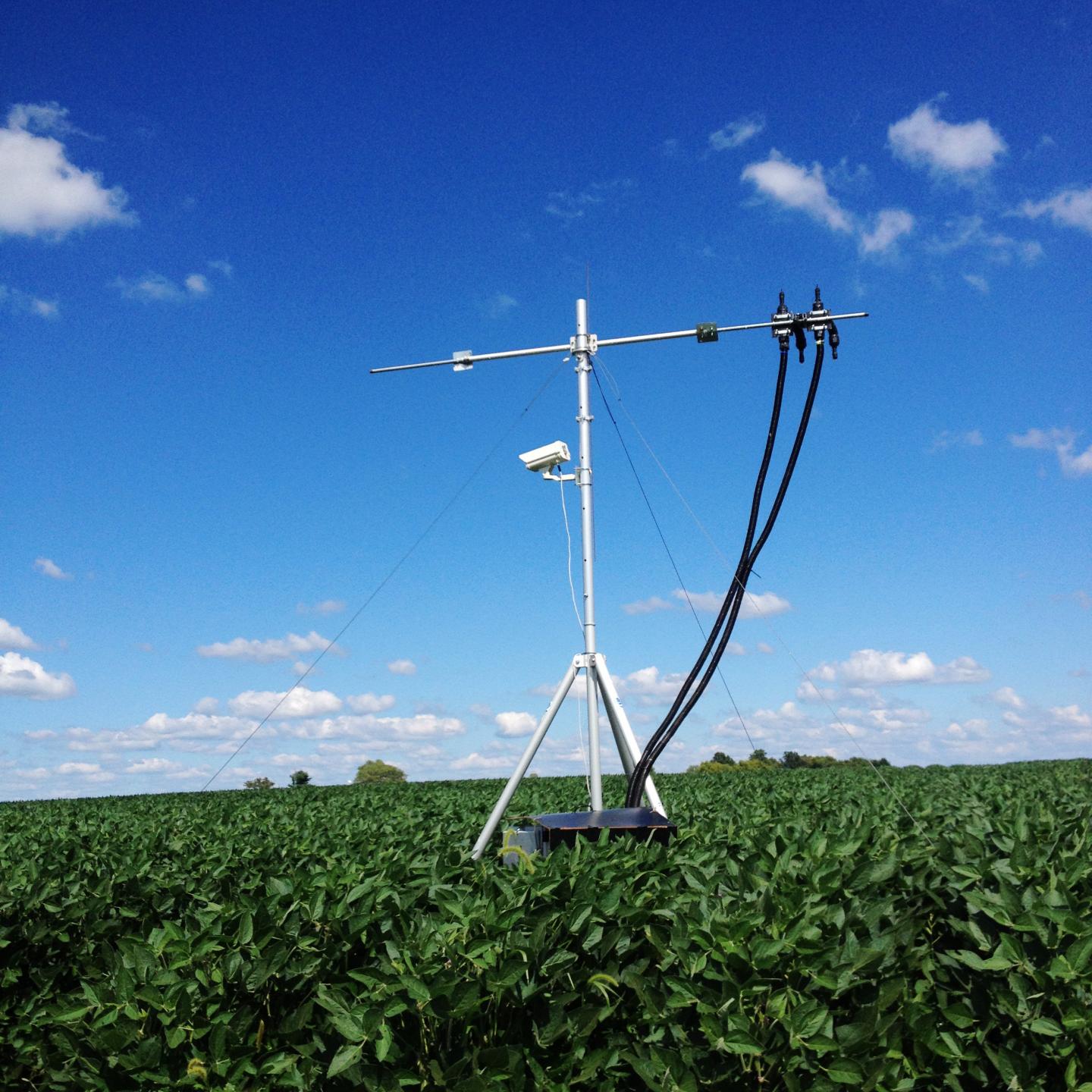 Twelve-foot metal poles with long outstretched arms dot a Midwestern soybean field to monitor an invisible array of light emitted by crops. This light can reveal the plants' photosynthetic performance throughout the growing season, according to newly published research by the University of Illinois.