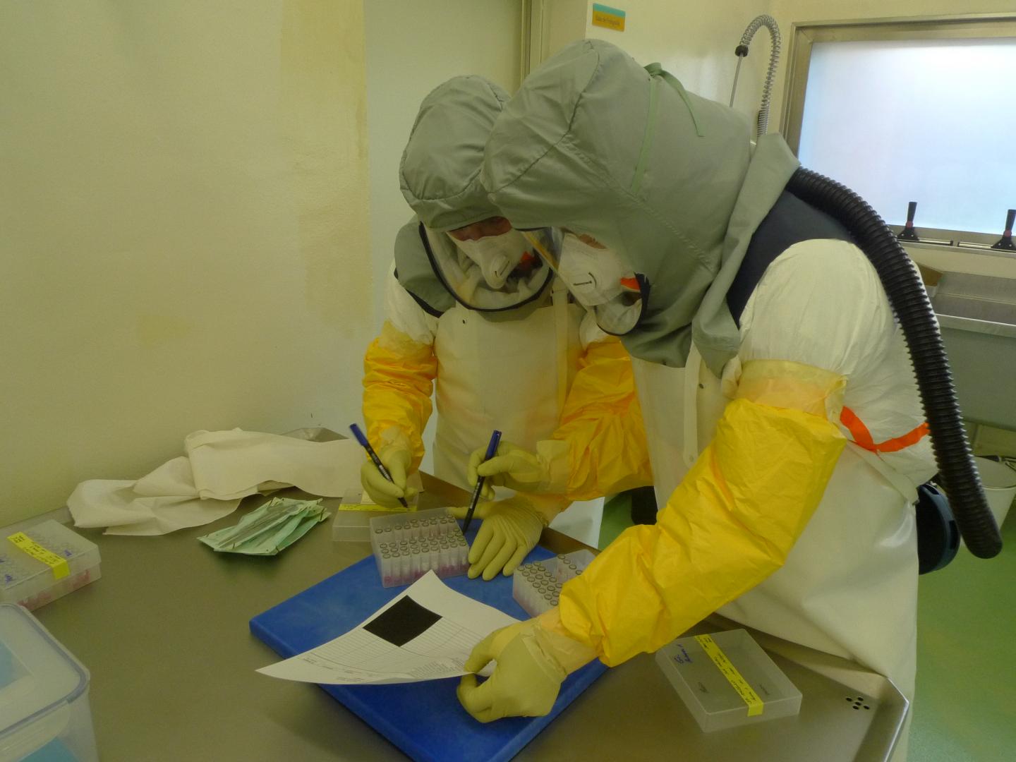 image: Working with coronavirus at the High Biosafety Level Unit of IRTA-CReSA.