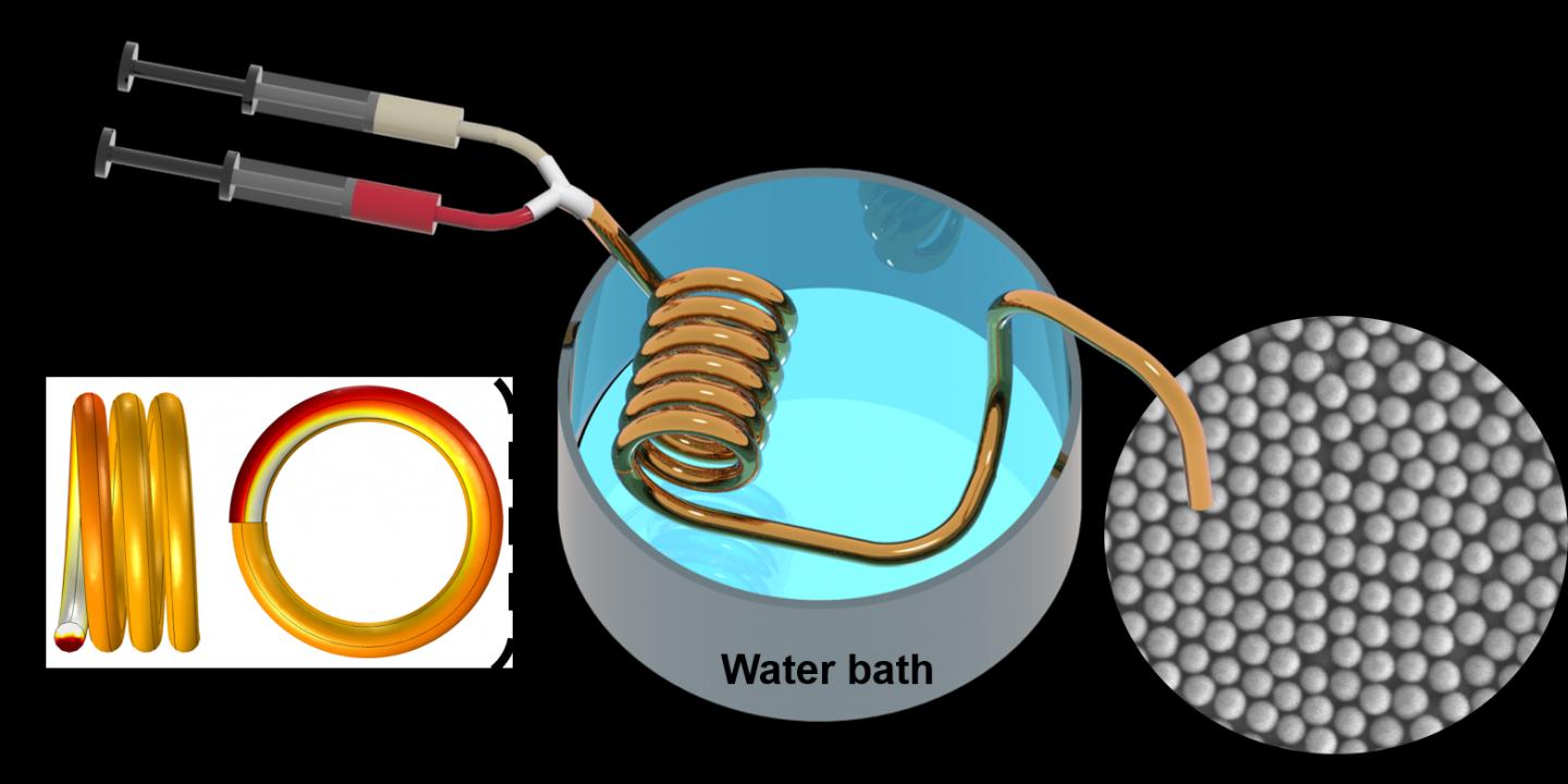 "Once you have the fluids in a tube that is spiralled, then due to these vortexes, they mix very quickly and ... the overall reaction is more homogeneous, the product is homogeneous, and the silica particles have a uniform size and shape."