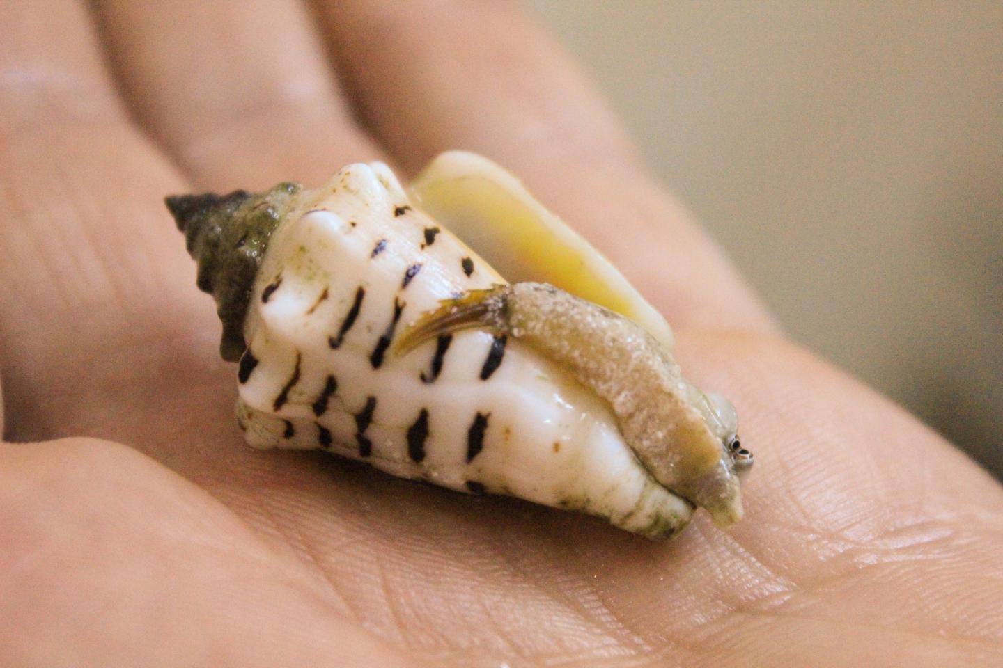 image: Living specimen of the marine mollusc Conomurex fasciatus. Millions of these shells were found on the Farasan Islands in Saudi Arabia as the food refuse of prehistoric fishers.