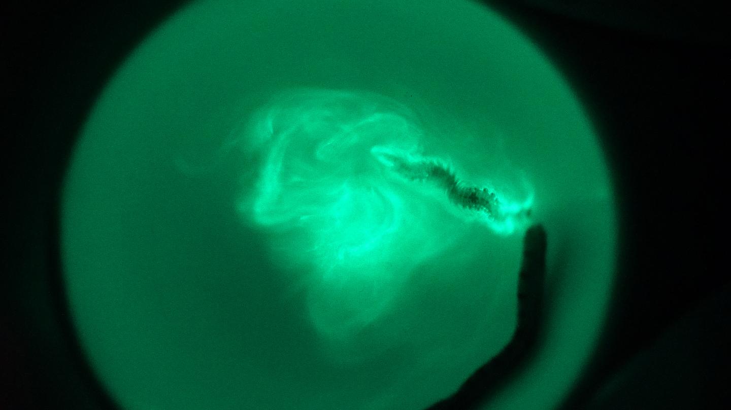 image: Bioluminescence of Odontosyllis undecimdonta worm and its secreted mucus.