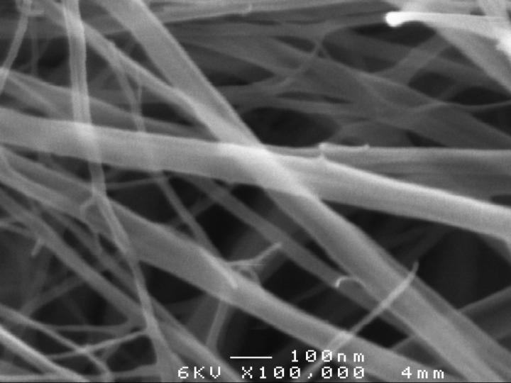 image: A scanning electron micrograph captured x100,000 magnification - showing the random cellulose microfibril network produced by the University of Queensland bacterial cellulose model. The plant primary wall cellulose (i.e. in fruit and vegetables) are usually thinner and may have different microfibril geometries compared to the bacterial cellulose microfibrils, which are 10 times larger. However, bacterial produced cellulose has the same general features of cellulose deposition as plants.