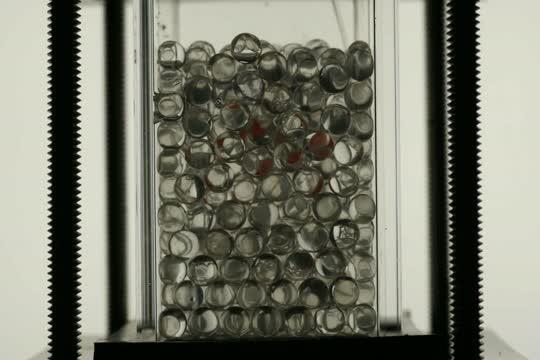 video: When researchers added an aqueous solution of ammonium thiocyanate, it cleared the distortion caused by the borosilicate glass beads and allowed for a clear view of the hydrogel. Video by Datta et al/Princeton University