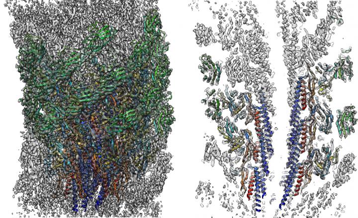 Now, researchers at Osaka University have used improved techniques of electron cryomicroscopy (cryoEM) to precisely image this supercoiled section of the flagellum that has been thought extremely difficult to analyze, to a 3.6 Å resolution that allowed atomic model building. CryoEM, which was the subject of the 2017 Nobel Prize in Chemistry, allows rapidly frozen biological samples to be imaged while they are still in their natural configurations. Even so, the new analysis still required particle-level calculations to reconstruct the most likely structure from the data. "It was thought impossible to look into such a high level of detail for the structure of the hook in its functional state, but we succeeded using cryoEM single-particle analysis," first author Takayuki Kato says.
