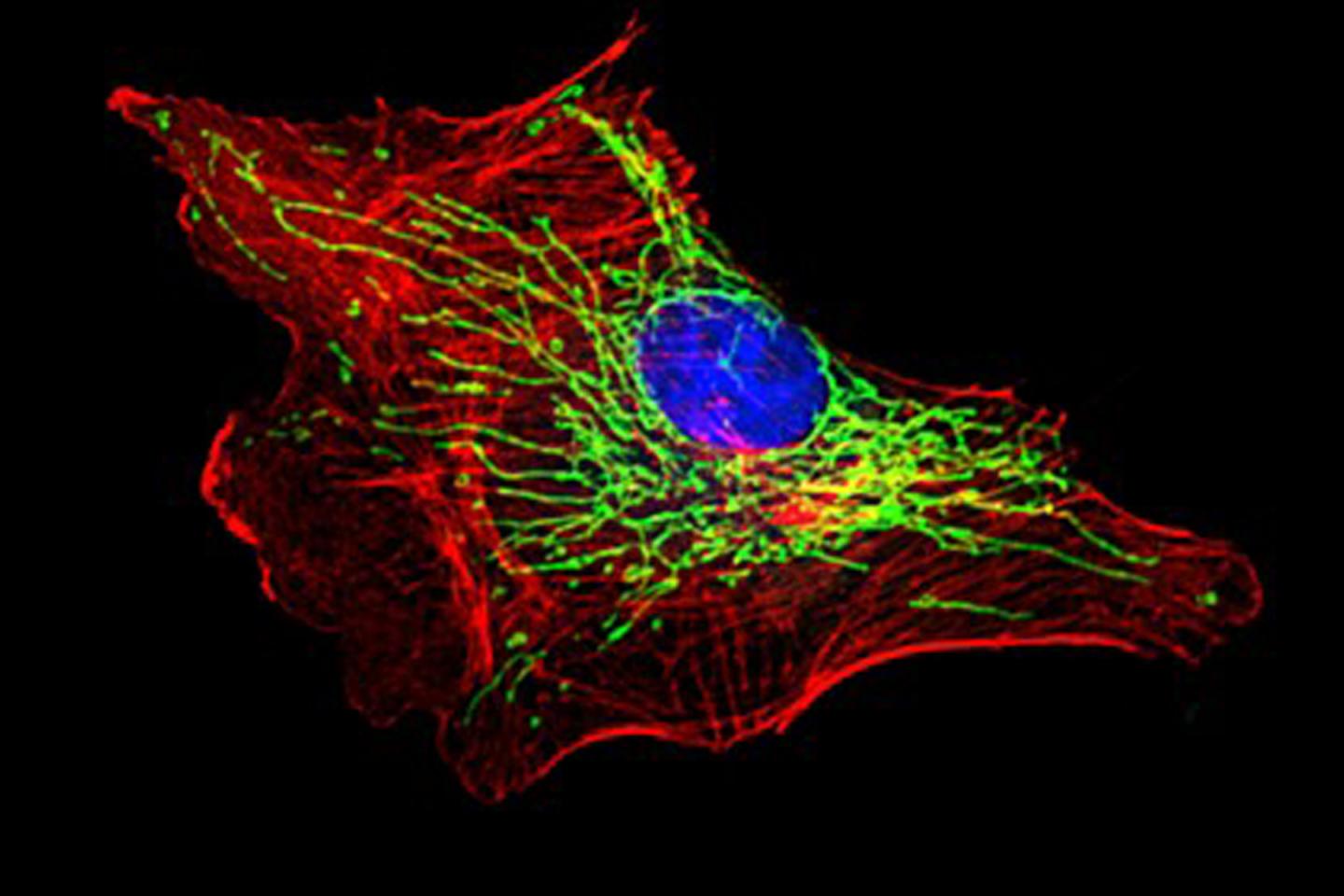 image: Mitochondrial network (green fluorescence) in a blood vessel endothelial cell