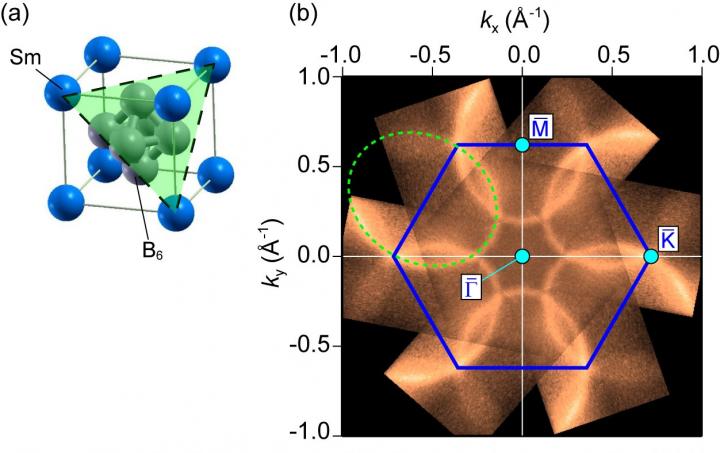 Osaka, Japan - A team led by Osaka University used angle-resolved photoelectron spectroscopy to probe the unusual surface conductivity of samarium hexaboride crystals. They showed that the material is a co-existing phase of "topological insulator" in which electrical current can flow along the surface but not through the bulk of the sample, a "Kondo insulator", which undergoes a metal-to-insulator transition due to the strong electron correlation. This work, which demonstrates that topological insulators can simultaneously have strong electron correlations, may allow for the development of quantum spin devices that use the magnetic spins of individual electrons to outperform current computers.