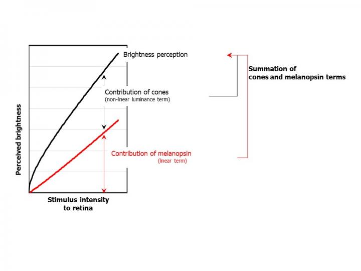 "We've found that melanopsin plays a crucial role on the human ability to see how well-lit the environment is. These findings are redefining the conventional system of light detection that so far has only taken into consideration two variables, namely brightness and the amount of incoming light. Our results suggest that brightness perception should rely on a third variable -- the intensity of a stimulus that targets melanopsin."