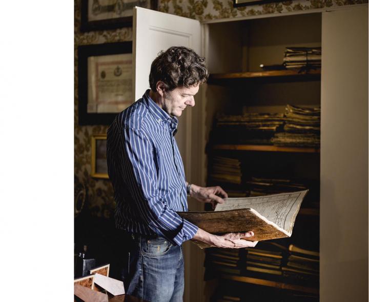 image: Francesco Paolo Valentini, owner of Valentini Azienda Agricola S.S., one of the oldest wineries in Italy, inspects records of grape harvests that date back more than 200 years. The winery, which has produced wine the same way for hundreds of years, is threatened by a changing climate.