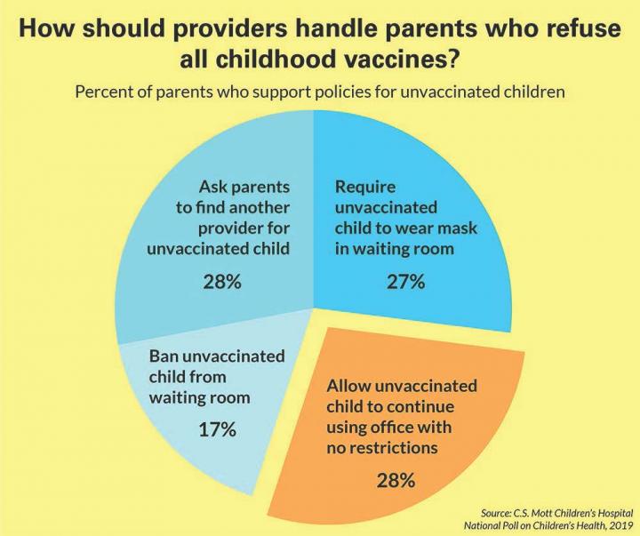 "Pediatricians strive to keep children healthy through regular well-child care and this includes encouraging families to follow recommended vaccine schedules. When a family refuses all childhood vaccines, it puts providers in a challenging position," says Mott Poll co-director Sarah Clark, MPH.