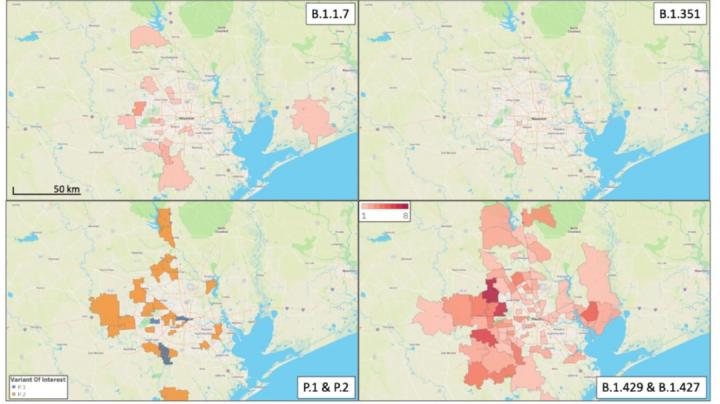 Dr. Musser notes that Greater Houston is the first metropolitan multiplex in the United States that has documented all of these important and concerning variants circulating among its residents. The Houston Methodist health system has one of the largest SARS-CoV-2 genome sequencing operations in the US and has so far sequenced 20,453 genomes from clinical specimens collected from patients from March 2020 to February 2021. Patient home address zip codes were used to see how the variants spread across Greater Houston's large, multiethnic, and geographically and socioeconomically diverse population.