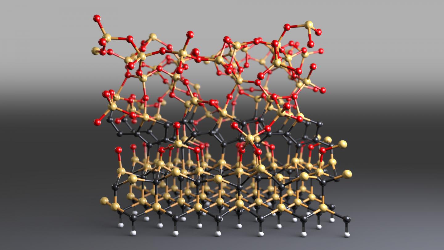 image: At the interface between silicon dioxide and silicon carbide, irregular clusters of carbon rings occur, which disturb the electronic function.