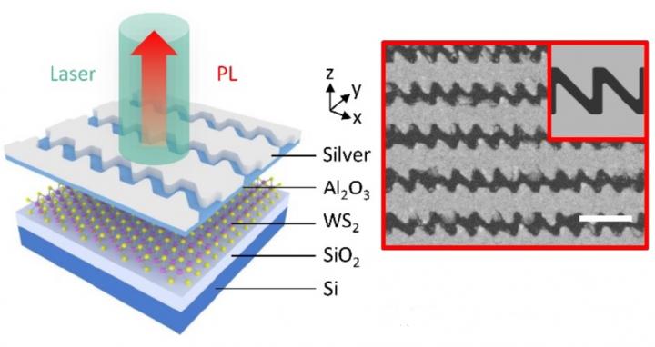 Scientists at the University of Groningen used a silver sawtooth nanoslit array to produce valley-coherent photoluminescence in two-dimensional tungsten disulfide flakes at room temperature. Until now, this could only be achieved at very low temperatures. Coherent light can be used to store or transfer information in quantum electronics. This plasmon-exciton hybrid device is promising for use in integrated nanophotonics (light-based electronics). The results were published in Nature Communications on 5 February.