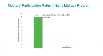 The researchers studied 405 mothers who were receiving newborn home visiting services through a free, city-wide program in New York City. Using a randomized controlled study, the researchers tested whether changing the enrollment option from opt-in to opt-out affects mothers' take up and completion of the early literacy program. Participants were predominantly low-income and racially and ethnically diverse.