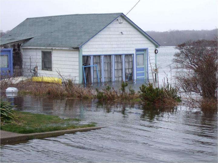image: House in Rhode Island in the midst of a flood in 2007.