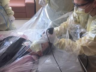 The team tested the guidelines in two different scenarios: In one, a mock patient posed under a plastic equipment drape that had been repurposed as a protective shield, confirming its utility for protecting health care workers during intubation and CPR and determining how to secure the shield around the patient for best results. In another, the team performed simulated intubation and CPR on a mannequin in a negative pressure room, with some team members outside the room passing off equipment and medications and others actively treating the simulated patient.