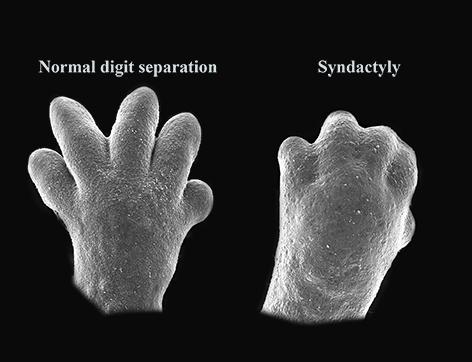 Irvine, Calif. - February 27, 2020 - Human fingers are sculpted from a primitive pad-like structure during embryonic development. Sometimes, this process goes awry and babies are born with fused fingers or toes. A new study from the University of California, Irvine reveals new factors involved in the congenital malformation called syndactyly.
