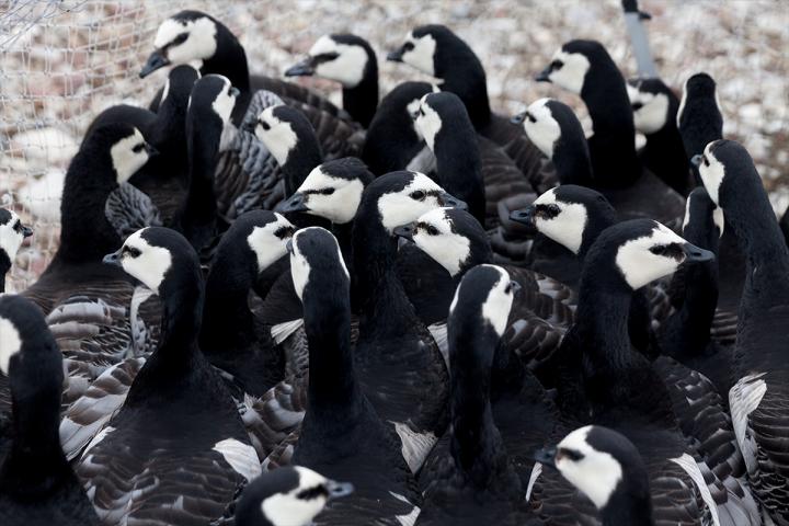image: A gaggle of geese awaiting measurement on the outskirts of Ny-Ålesund.