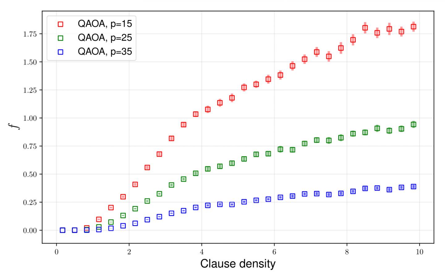 The authors discovered that QAOA's ability to approximate optimal solutions for any fixed depth quantum circuit is fundamentally dependent on the problems "density." In the case of the problem called MAX-SAT, the so called density can be defined as the ratio of the problems constraints to variable count. This is sometimes called clause density.